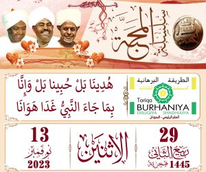 يقول مولاي الإمام فخر الدين الشيخ محمد عثمان عبده البرهاني .. جُمِعْنَا فِى مَقَامِ الوَصْلِ حَشْدًا وَأَمَّ الْجَمْعَ سَيِّدُنَا الْحُسَيْنُ نتقدم بالتهاني للأحباب في كل مكان بحلول حولية سيدنا ومولانا أبا عبدالله الإمام الحسين رضي