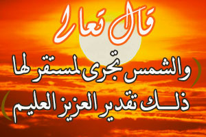 ﴿وَالشَّمْسُ تَجْرِى لِمُسْتَقَرٍّ لَهَا ذَلِكَ تَقْدِيرُ الْعَزِيزِ الْعَلِيمِ﴾ يس: 38)، حديث صحيح متفق عليه ، وزادوا فتطلع من مغربها وذلك حين ﴿لا يَنْفَعُ نَفْسًا إِيمَانُهَا لَمْ تَكُنْ آَمَنَتْ مِنْ قَبْلُ﴾ يس: 38، الآية